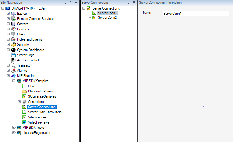 The ServerConnections license sample contains a license check that validates every server connection defined in the system. A server connection in this sample is understood as a connection to a server that is part of the solution and not a Milestone server.